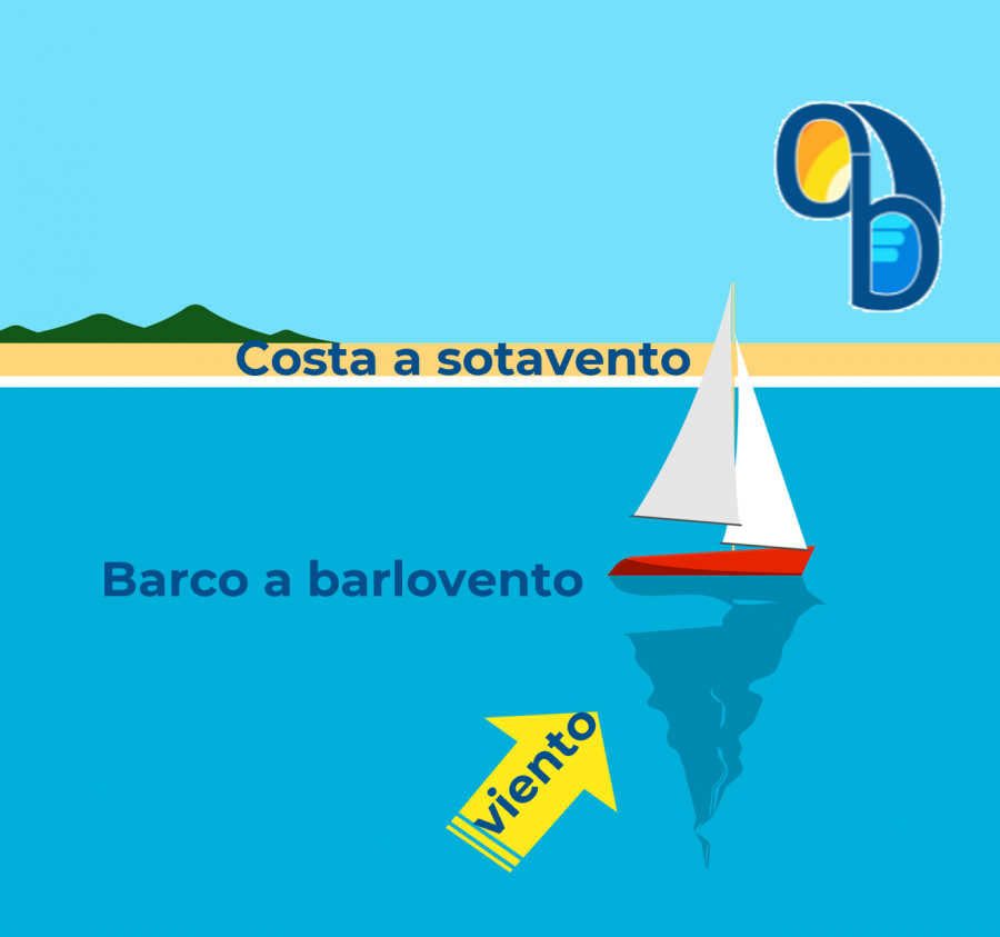 - Si nos referimos a la posición del barco respecto a la costa y el viento sopla hacia la costa, podremos hablar de la costa a sotavento. En este caso el barco estaría a barlovento de la costa.
