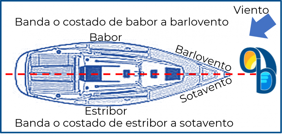 - Si dividimos el barco por la línea de crujía, podremos decir que una banda o costado está a barlovento y la otra a sotavento.